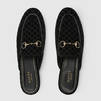 In the latest collection, the Princetown slipper is defined by its elegant silhouette, refined materials and the classic Horsebit. This model is enhanced by the light gold-toned hardware. - Black GG velvet - Light gold-toned hardware - Horsebit - Leather sole - Flat - Height: 0.5" - Made in Italy