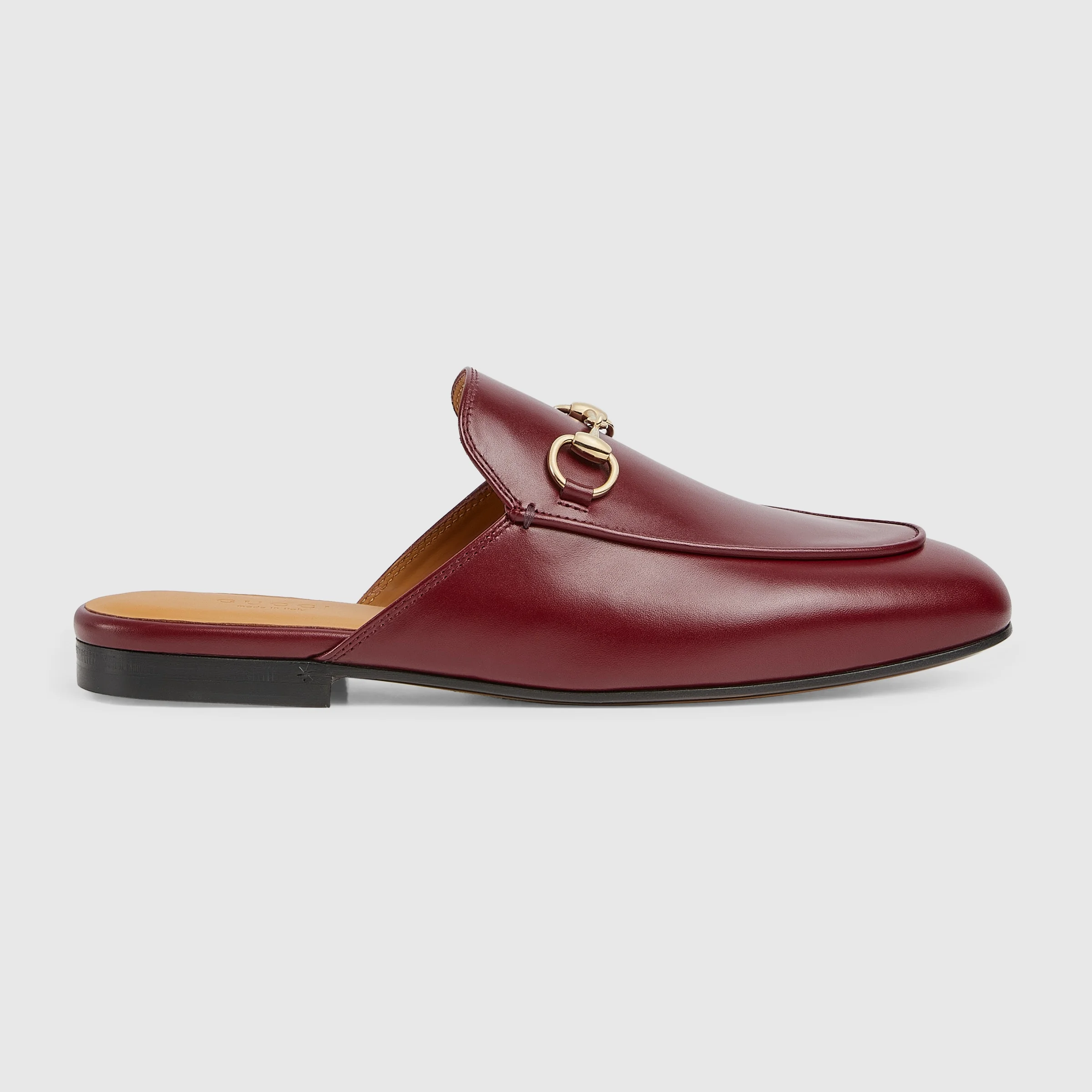 An essential Gucci style since its debut, the Princetown slipper is now reimagined with refined materials and iconic motifs. The established mule design features the distinctive gold-toned Horsebit, an archival symbol inspired by the equestrian world, while the soft and supple leather furthermore defines the accessory. - Gucci Rosso Ancora red leather - Women's - Light gold-toned hardware - Leather lining - Horsebit detail - Leather sole - Flat - .4" heel - Made in Italy