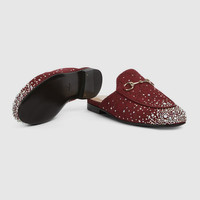 In the Fall Winter 2025 collection, this shoe features multi-dimensional crystals that add a special feature to the classic silhouette. The emblematic monogram canvas adds a touch of timeless elegance, highlighting the brand's heritage. Carefully crafted, this design effortlessly combines luxury and bold style, making it a true statement piece. - Gucci Rosso Ancora red GG canvas - Light gold-toned hardware - Leather lining - Horsebit - Multi-dimension crystals detail - Flat - Made in Italy