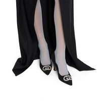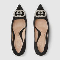 The latest women's shoes collection presents evening silhouettes with a crystal-set Interlocking G hardware, adding a sparkling touch to this pump crafted in suede. - Black suede - Leather lining - Crystal Interlocking G - Softly square vamp - Leather sole - Spool mid-heel - 3.3" height