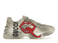 For Cruise 2019, Gucci staged a rave among the ancient graves of Alyscamps' Roman necropolis, in Arles. In the decadent setting, models walked a runway divided by flames, playing rock stars with looks that brought back ‘80s glam mainstays: thick makeup, spikes, laced-up leather, narrow denim and daring animal prints. The sneaker speaks to an era of metal in a distinctly Gucci way, with a rock band inspired print. Designed with a thick sole and chunky construction in distressed leather. - Featured in Vogue’s 25 Ways to Gucci - Ivory leather treated for a vintage, distressed effect - Mouth and Gucci print - Women's - Rubber sole - Low heel - 1.8" height - Made in Italy