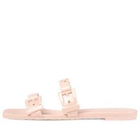 A playful twist on an essential style, the slide sandal is presented in light pink rubber for the Pre-Fall 2020 collection. The slimline silhouette is enhanced by chain details. - Light pink rubber - Women's - Rubber chain details - Flat - .6" height - Made in Italy