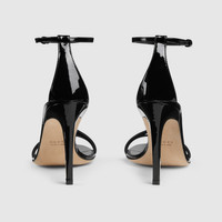 This high-heel sandal is distinguished by a crystal-encrusted bamboo detail—a luminous take on a signature House code. An elegant silhouette that merges archival inspiration with contemporary allure. - Black patent leather - Crystal encrusted bamboo detail - Leather sole - Adjustable ankle closure with buckle - High heel - Made in Italy