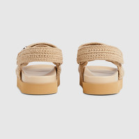 Lending a contemporary and sporty touch, these flat sandals with velcro straps offer all-day ease. Crafted from beige cotton crochet, the accessory is defined by a delicate Double G hardware on the upper band. - Beige cotton crochet - Women's - Light gold-toned hardware - Double G - Rubber lug sole - Velcro closure at the back and strap closure at the front - Made in Italy