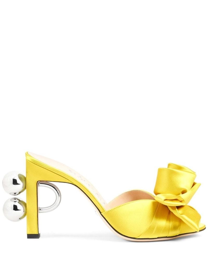 rose open-toe sandals Maximalism is intertwined into Gucci's collections and has been a focus of the brand ever since Alessandro Michelle took the position of creative director. These open-toe sandals speak to the Italian label's aesthetic with a lemon yellow satin upper and bulbous silver-tone hardware pierced into the high heel. Made in Italy Composition Lining: Leather 100% Outer: Satin 100% Sole: Leather 100%