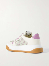 EDITORS'NOTES Gucci's 'Double Screener' sneakers are instantly recognizable to those in the know, thanks to multiple house hallmarks, like the iconic 'GG' motif. Based on a '30s model, they're decorated with tonal crystals and crafted from Italian-made leather and coated cotton-canvas. Wear yours with everything from denim to midi dresses. SIZE & FIT - Fits true to size, take your normal size - Italian sizing DETAILS & CARE - Sole measures approximately 50mm/ 2 inches - Cream and pink leather, light-green cotton-canvas - Lace-up front