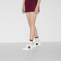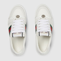 Influenced by classic trainers from the 1970s, the Screener sneaker is named for the defensive sports move. Here the emblematic style is presented in white leather with an embossed GG leather insert - White leather - Women's - Green and red Web - Embossed GG leather insert - Oval enameled detail with metal Double G - Embossed Gucci logo - Additional pair of laces included - Lace-up closure - Low heel - Made in Italy
