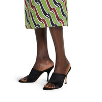 Introduced on the Cruise 2026 runway, this open toe slide exudes 1990s minimalism with the sleek design set on a stiletto heel. The silhouette, which draws from archival inspirations, is minimalist and sensual at the same time. - Black satin - Leather lining - Embossed Gucci logo on the upper - Round toe - Leather sole - High heel - 3.7" height