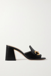 EDITORS'NOTES "'The 'Ouverture' collection brings together details inspired by different eras to create something new," says Gucci. Made in Italy, these smooth leather mules are topped with an exaggerated version of the house's signature gold 'Horsebit' hardware. They're set on chunky block heels. SIZE & FIT - Fits true to size, take your normal size - Italian sizing DETAILS & CARE - Heel measures approximately 75mm/ 3 inches - Black leather (Lamb) - Slip on