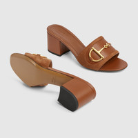 This women’s slide sandal is defined by the signature Horsebit detail in gold-toned hardware. Crafted from refined suede, the design merges heritage inspiration with modern versatility, offering a refined touch to warm-weather ensembles. - Light brown suede - Women's - Gold-toned hardware - Leather trim - Horsebit - Leather sole - Low heel - Height: 2,16" - Made in Italy