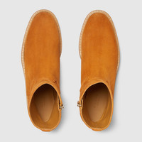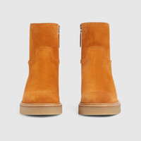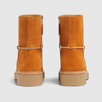 Featuring a slim Horsebit detail and paying homage to the House's rich equestrian heritage, these boots are crafted in refined suede. The classic silhouette is sophisticated and perfectly narrates the Gucci elegance. - Brown suede - Women's - Light gold-toned hardware - Slim Horsebit - Creeper-effect rubber sole - Zip closure - Flat - Height: 0.7" - Made in Italy
