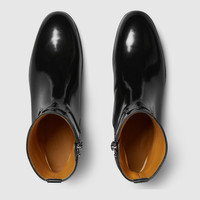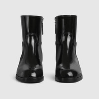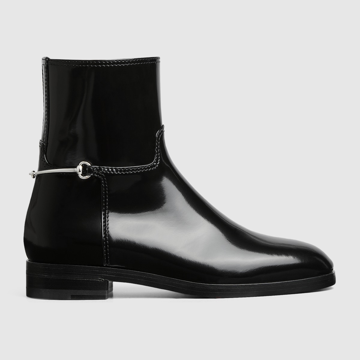 Featuring a slim Horsebit detail and paying homage to the House's rich equestrian heritage, these boots are crafted in refined shiny leather. The classic silhouette is sophisticated and perfectly narrates the Gucci elegance. - Black shiny leather - Women's - Light silver-toned hardware - Slim Horsebit - Leather sole - Zip closure - Flat - Height: 0.7" - Made in Italy