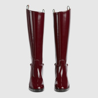 Featuring a slim Horsebit detail and paying homage to the House's rich equestrian heritage, these boots are crafted in bordeaux shiny leather. The classic silhouette is sophisticated and perfectly narrates the Gucci elegance. - Bordeaux shiny leather - Women's - Light gold-toned hardware - Slim Horsebit - Web pull tabs - Leather sole - Flat