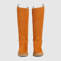 Featuring a slim Horsebit detail and paying homage to the House's rich equestrian heritage, these boots are crafted in refined leather. The classic silhouette is sophisticated and perfectly narrates the Gucci elegance. - Brown suede - Women's - Light gold-toned hardware - Slim Horsebit - Web pull tabs - Creeper-effect rubber sole - Flat