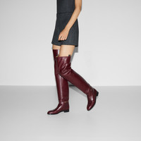 Featuring a slim Horsebit detail and paying homage to the House's rich equestrian heritage, these boots are crafted in refined leather. The classic silhouette is sophisticated and perfectly narrates the Gucci elegance. - Bordeaux leather - Women's - Light gold-toned hardware - Slim Horsebit - Web pull tabs - Leather sole - Elastic inserts - Flat