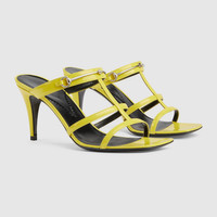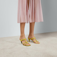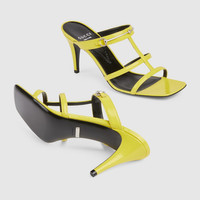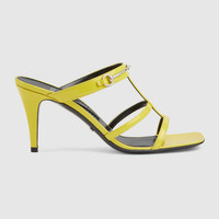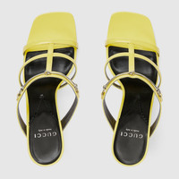 Retro shapes and metallic materials frame designs with a 1990s vibe. This pair of open toe sandals is presented with a square-shape toe, thin straps and a mid-heel. Crafted from yellow leather, the shoe is defined by an elongated version of the Horsebit hardware. - Yellow leather - Women's - Silver-toned hardware - Slim Horsebit - Leather sole - Mid-heel - 2.9" heel height, based on a size 37 (IT) - Made in Italy