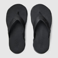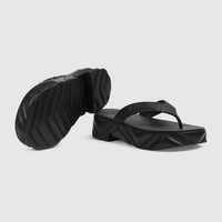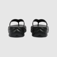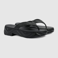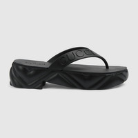 Rubber adds a playful, retro-inspired note to contemporary accessories. Presented in black, this sandal is accentuated by Gucci embossed strap, and a rubber platform sole completes the design. - Black rubber - Women's - Gucci embossed strap - Chevron embossed platform and sole - Mid heel - 2" heel height