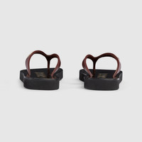 Emblematic codes of the House are reinterpreted in contemporary ways. Crafted in leather, this thong sandal is elevated with a Double G hardware in light gold-toned finish and logo detail on the smooth leather insole. - Dark brown and light yellow leather - Light gold-toned hardware - Leather lining - Double G detail - Rubber sole - Leather insole with Gucci logo - Flat