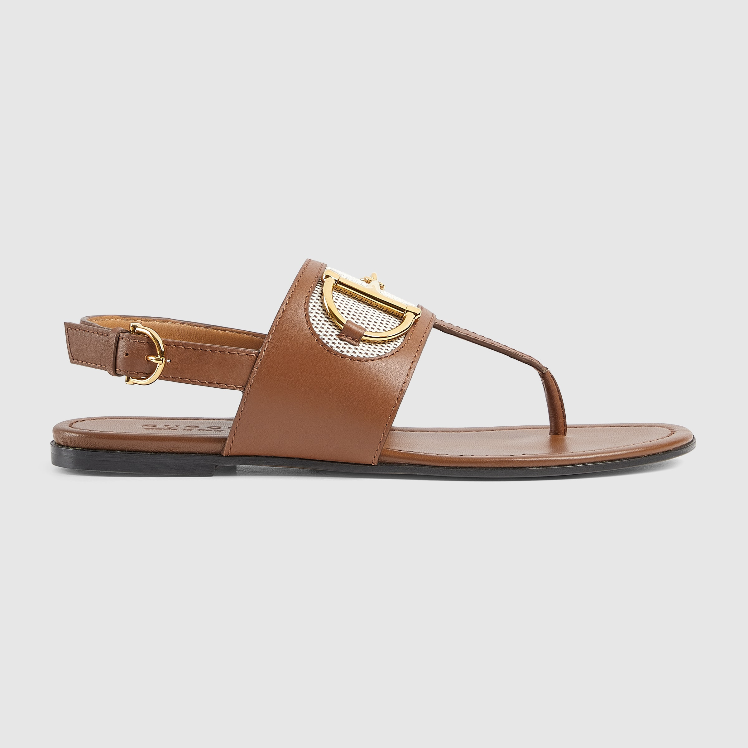 This women’s thong sandal embodies Gucci’s heritage with the signature Horsebit detail in gold-toned hardware. Crafted from refined suede, the design offers an elegant yet effortless aesthetic, perfect for warm-weather styling. - Light brown suede - Women's - Gold-toned hardware - Leather trim - Horsebit - Ankle closure with adjustable buckle - Flat - Made in Italy