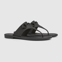 Emblematic codes of the House and refined patterns are reinterpreted in contemporary ways for the Pre-Fall collection. This thong sandal appears in black rubber with the Horsebit hardware enriching the style as an enameled detail. - Black rubber - Women's - Enameled Horsebit - GG rubber insole - Rubber sole - Flat - 0.4" heel height - Made in Italy