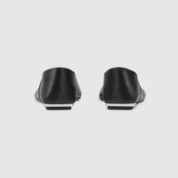 Introducing Spring Summer 2026. Vittoria is an extremely flexible silhouette in the La Famiglia collection, highlighting a sleek elongated toe. Crafted from soft leather, it can be worn with the back folded down for effortless elegance, which inspires its name. - Black nappa leather - Silver-toned hardware - Beige leather lining - Horsebit and "Made in Italy by Gucci" logo in matching metallic finish - Elongated, slightly square toe - Leather sole - Heel with metallic plate - Flat - Made in Italy