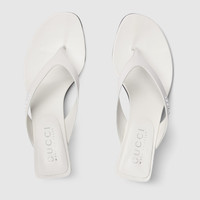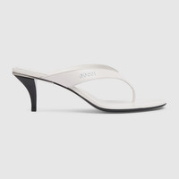 Introducing Spring Summer 2026. Vittoria highlights a sensual thong silhouette in the La Famiglia collection. Crafted from soft leather, it features a cone-shaped heel for effortless elegance, which inspires its name. - White nappa leather - Tonal leather lining and insole - Tonal metal logo on the upper - Almond-shaped toe - Leather sole - Cone-shaped, leather-covered heel, embellished with metallic plate - Mid heel - Height: 2.2" - Made in Italy