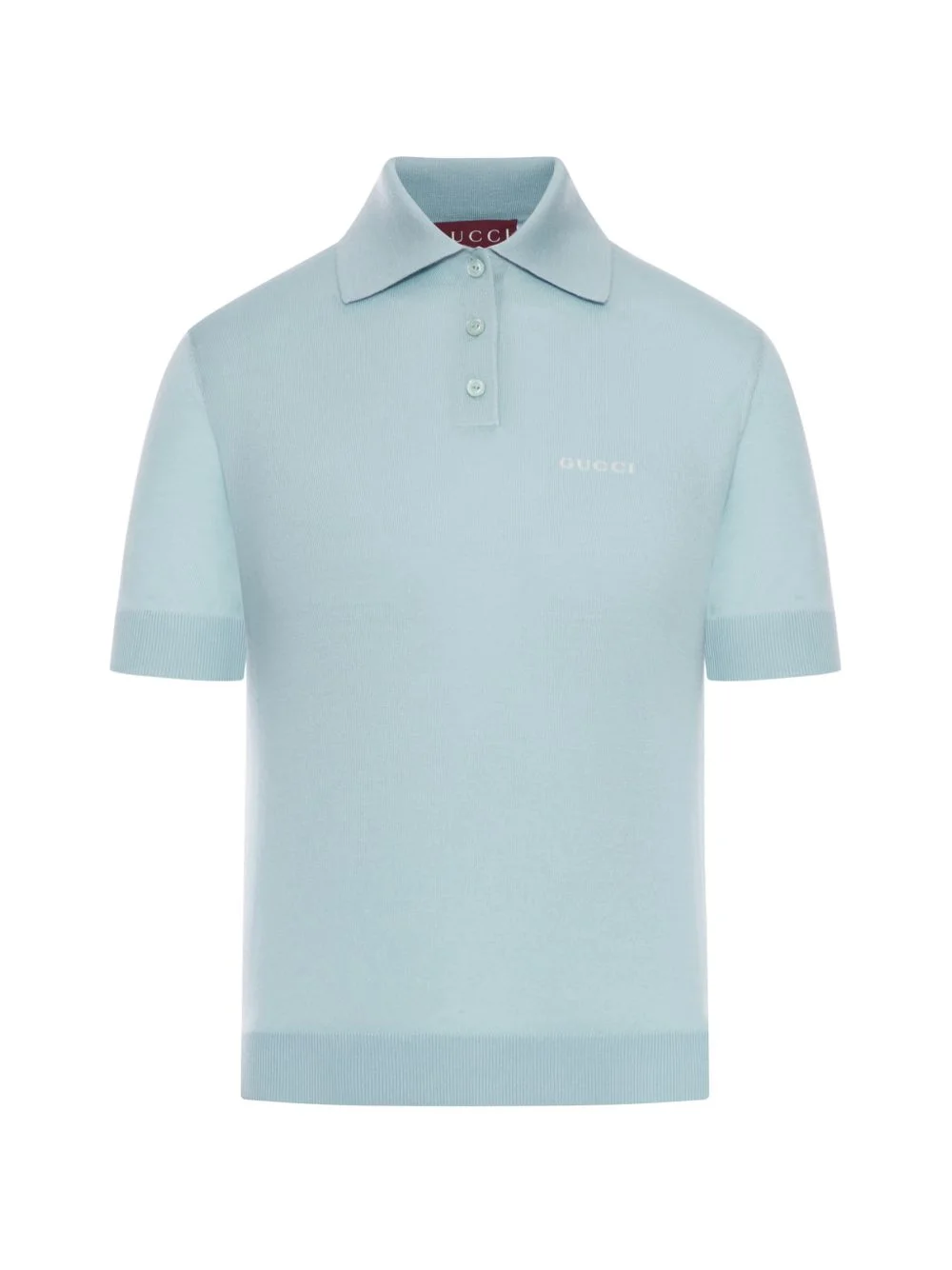 logo polo top Highlights - Blue - Button fastening - Short sleeves - Straight hem - Embroidered logo Made in Italy Composition Wool 50%, Silk 50% Washing instructions Read Manufacturer Guidelines