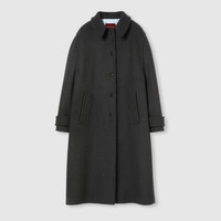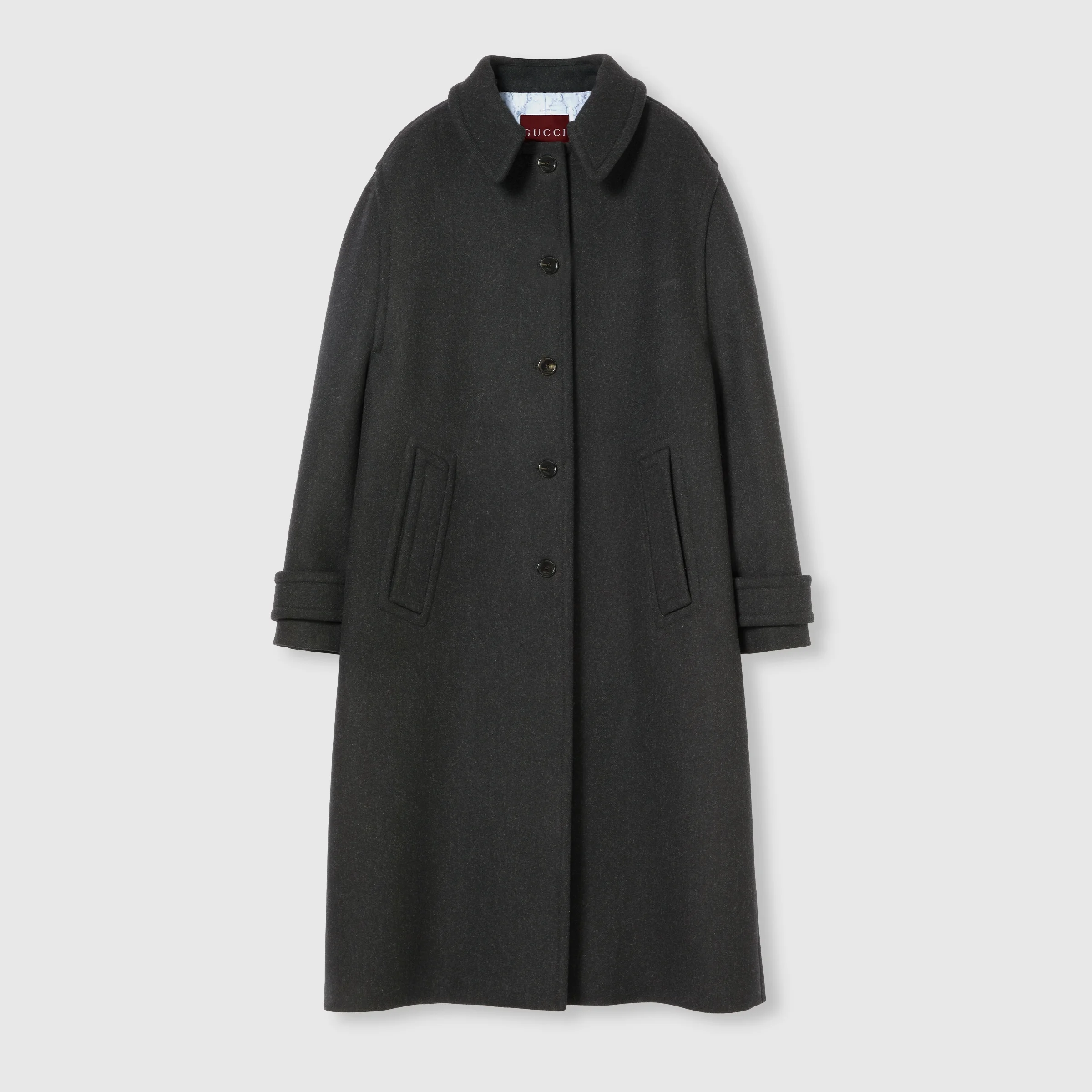 In the Fall Winter 2025 collection, outerwear takes on an minimal silhouette. This fully lined coat features a button-up front, pointed collar and welt pockets, offering a timeless design. - Dark grey wool batavia - Fully lined - Point collar - Long sleeves with tab cuffs - Front welt pockets - Button closure - Length: 49.2"; based on size 44 IT - Made in Italy