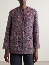 Gucci's jacket has been tailored in Italy from wool-blend boucle featuring navy, red and white threads that create a tactile handle and flecked appearance. It has logo-embellished buttons and a full satin lining for a smooth fit. Layer it over a blouse or mini dress.