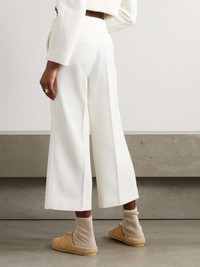 EDITORS'NOTES Cozy and chic, Gucci's pants have been tailored in Italy from tactile wool-blend boucle. They have a high-waist embellished with a silver-tone 'GG' button and neatly pressed creases that emphasize the wide-leg shape. SIZE & FIT Model measurements: - Fits true to size, however those who are between sizes should take the smaller size - High-rise, cut for a wide-leg fit - Cropped length - Mid-weight, non-stretchy fabric - Model is 180cm/ 5'11" and is wearing an IT 38 - Bust: 80cm/ 31.5" - Waist: 60.5cm/ 24" - Hip: 88.5cm/ 35" DETAILS & CARE - Off-white wool-blend boucle - Button and concealed zip fastening at front - 93% wool, 7% polyamide - Dry clean