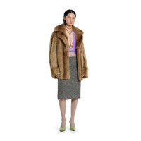 In the Fall Winter 2025 collection, this skirt is finished with a metal logo detail on the front. Fully lined, the style features a back slit and zip closure. - White and black seeded wool with a textured appearance - Lined - Back slit - Logo detail and zip closure - Length: 24.8"; based on a size 38 (IT) - Made in Italy