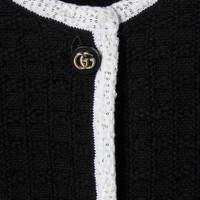 Coats, jackets, and dresses blend discreet elegance with refined details in the Pre-Fall 2025 collection. This soft tweed wool cardigan with a bon-ton feel is enriched with a sequin embroidered trim and gold-toned Double G buttons. - Black and white soft tweed wool - Sequin embroidered trim - Self-covered gold-toned Double G buttons - Crewneck - Two front pockets - Button closure - Made in Italy