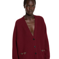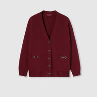 The Pre-fall 2025 collection introduces a new take on warm materials on sophisticated knitwear pieces, in traditional and contemporary silhouettes. This cashmere wool cardigan is defined by two Horsebit hardware details on the front pockets. - Burgundy cashmere wool - Horsebit detail - V-neck - Wide sleeves - Two front pockets - Wide rib trim - Button closure - Made in Italy