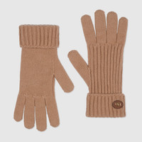 Presented in camel, this pair of gloves is crafted from rib knit wool cashmere. Originally inspired by a belt buckle from the 1970s, the Double G defines the accessory as a leather patch detail. - Camel rib knit wool cashmere - Gold-toned hardware - Oval Double G leather patch - Made in Italy