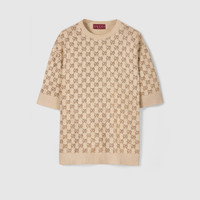 In the Cruise 2026 collection, crystal embroidery creates a sparkling contrast with the texture of emblematic fabrics of the House. Crafted from wool cashmere, this sweater is enriched with allover GG crystals. - Ivory wool cashmere - Allover GG crystals - Crewneck - Dropped shoulder - Half length sleeves - Rib trim - Length: 25.2"; Shoulder: 18.1"; Half waist/chest: 20.5"; Sleeves length: 11" based on a size s - Made in Italy - Fabric: 55% Wool, 22% Cashmere, 16% Viscose, 7% Metallised fiber - Non textile application: 100% Glass