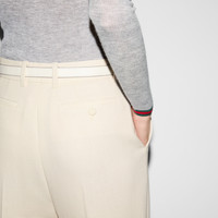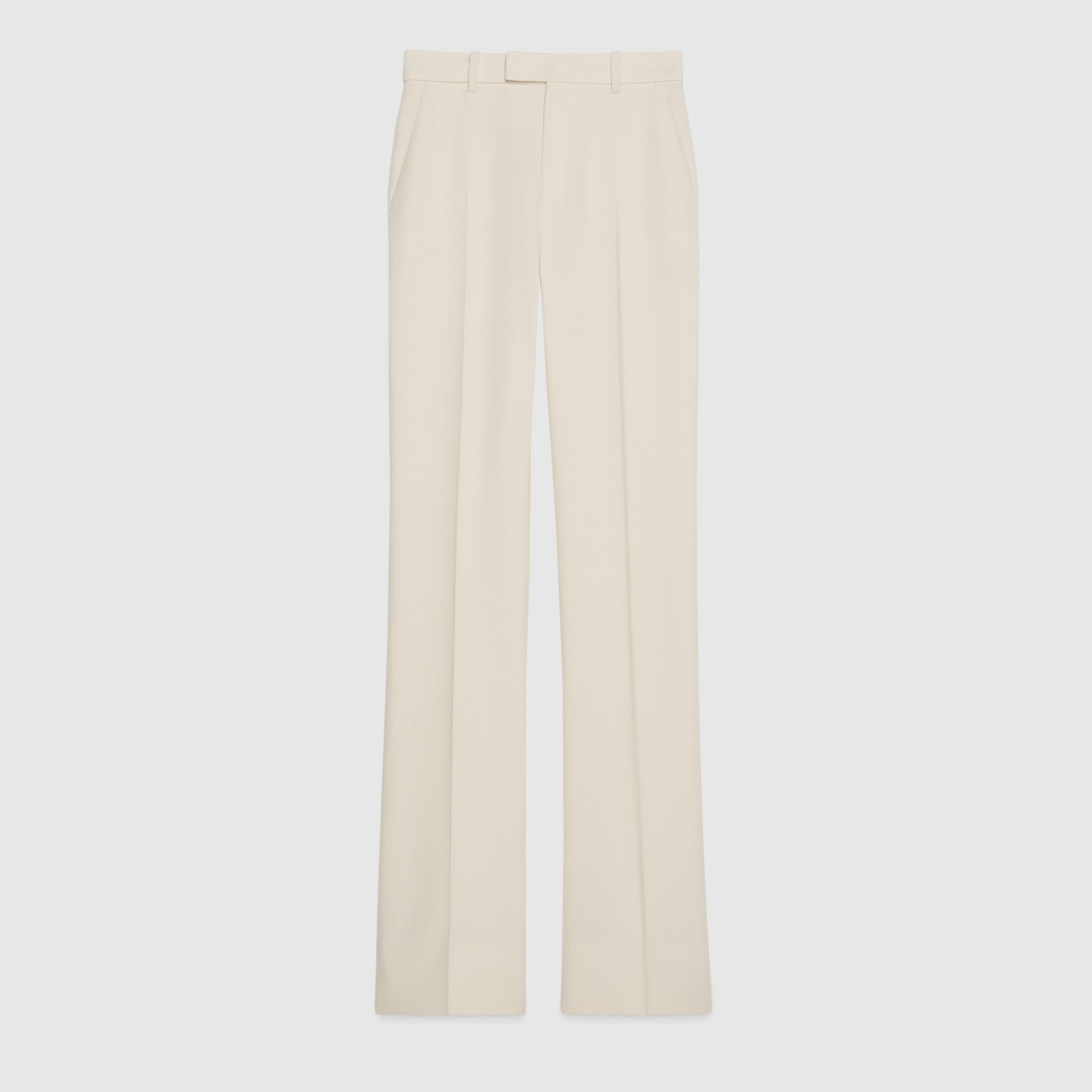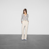 Further exploring formalwear with an unconventional approach, the Spring Summer 2023 collection looks at the concept of tailoring with a new lens. The House reinterprets classic silhouettes, combining minimal jackets with cues from the 1990s for an innovative update of the wardrobe. This classic pant style is crafted from ivory crêpe wool. - Ivory crêpe wool - Belt loops - Two side pockets - Two back pockets - Regular waist - Button and zip closure - Length: 49.2" based on a size 40 (IT) - Made in Italy - The model is 5'8" and is wearing size 40 (IT)