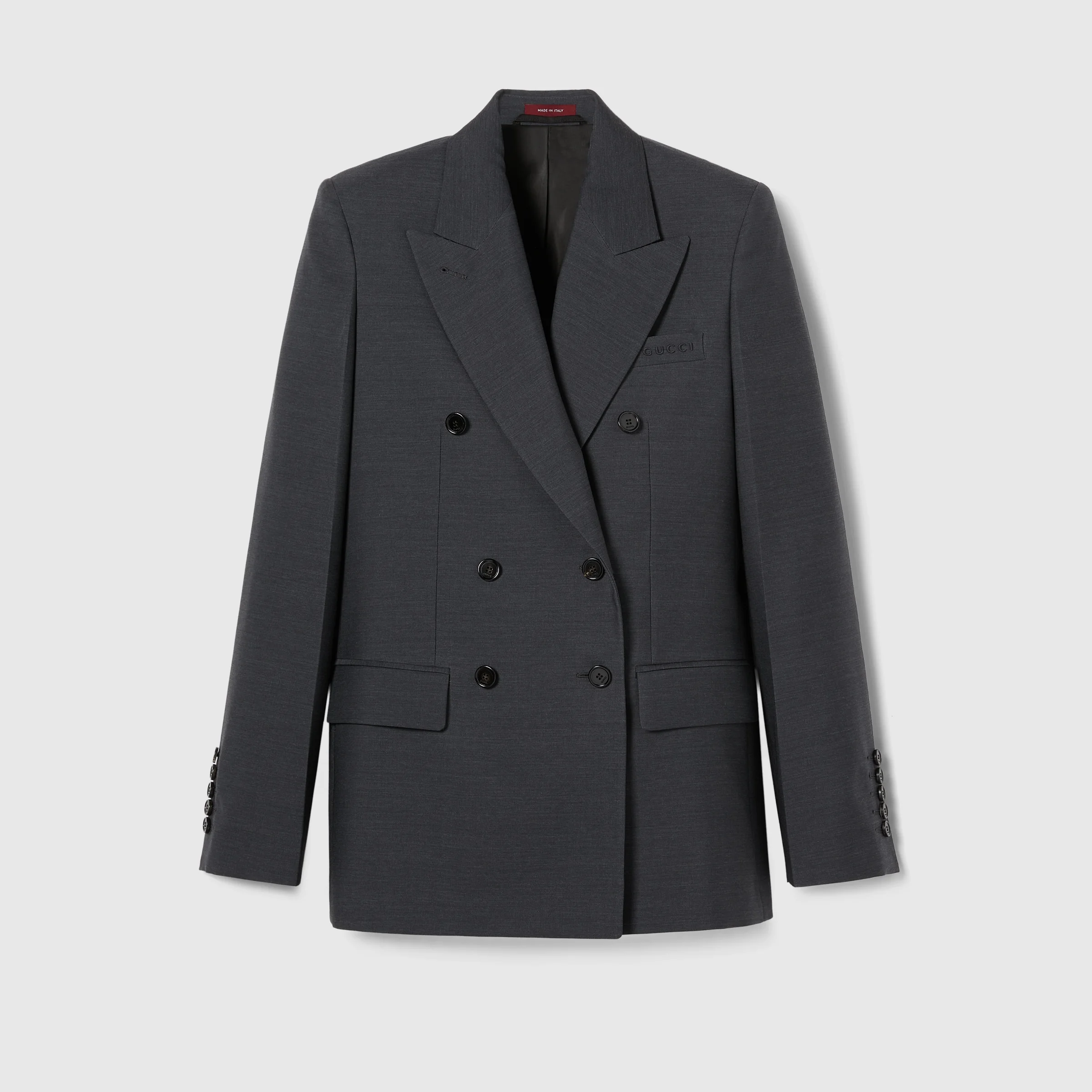 In the Spring Summer 2025 collection, unexpected tailoring is introduced through precise silhouettes, such as this double-breasted jacket with peak lapel. - Grey lightweight wool - Lined - Double-breasted - Peak lapel - Long sleeves - One chest pocket - Two front flap pockets - Button closure - Length: 28" based on a size 40 (IT) - Made in Italy - The product shown in the image is a size 40 (IT)