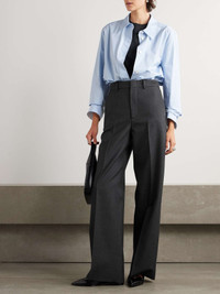 EDITORS'NOTES Gucci's pants are tailored from soft wool - the wide-leg cut mean they hang gorgeously. Team them with the season's Mary Jane flats. SIZE & FIT Model measurements: - Fits true to size, take your normal size - High-rise, designed for a wide-leg fit - Mid-weight, non-stretchy fabric - Model is 180cm/ 5'11" and is wearing an IT 40 - Bust: 81cm/ 32" - Waist: 63cm/ 25" - Hip: 91cm/ 36" DETAILS & CARE - Charcoal wool - Concealed hook and zip fastening at front - 100% wool - Dry clean