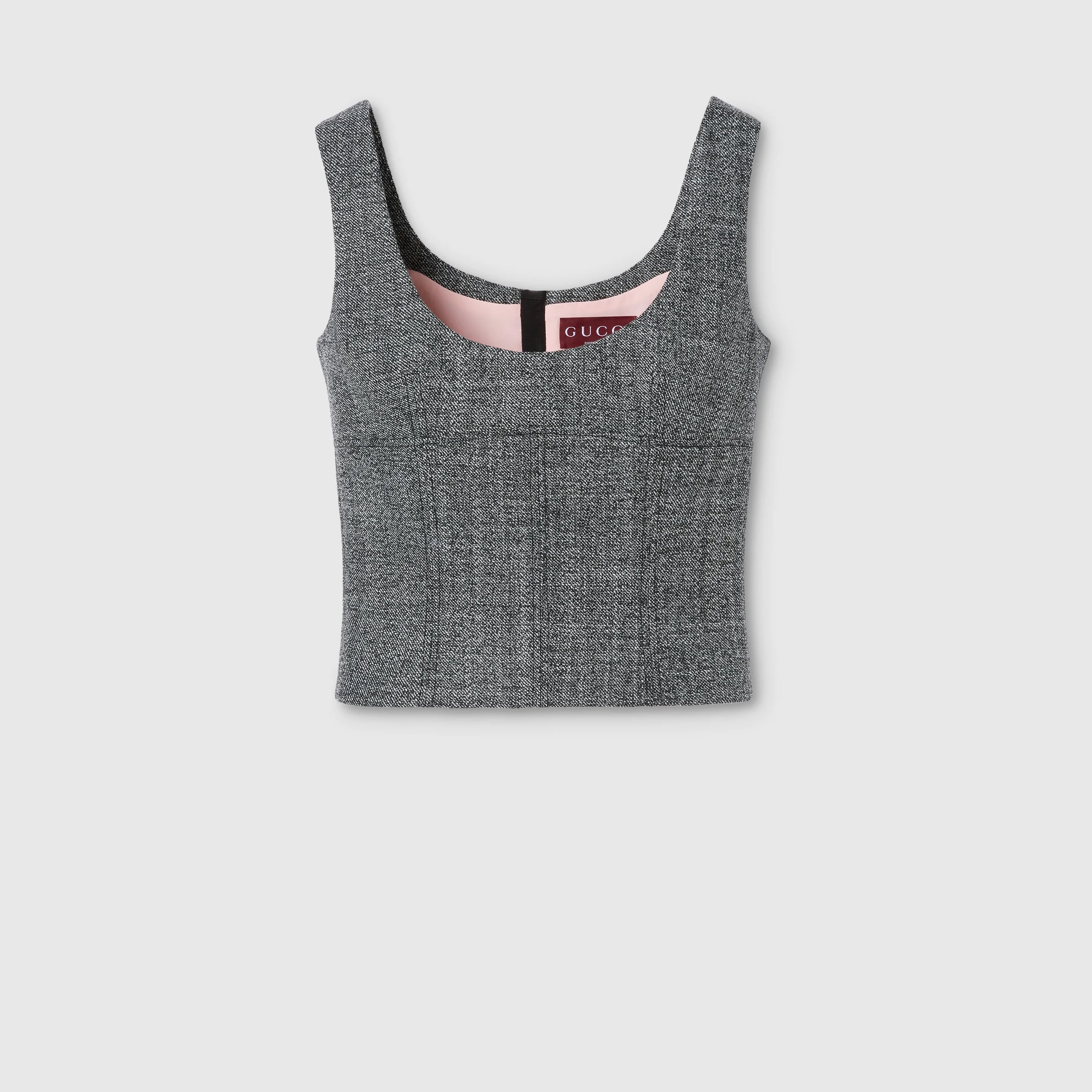 The Cruise 2026 women's ready-to-wear collection celebrates the Gucci wardrobe, blending archival influence with the history of Florence in a playful melange, ranging from the minimal to the maximal. This top is crafted from black and white wool grisaille. - Black and white wool grisaille - Lined - Scoop neck - Sleeveless - Hidden zip closure - Length: 18.1"