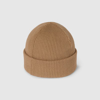 The Pre-Fall 2025 soft and silk accessories' collection animate House codes through sophisticated trimmings, logo patches and subtle embroideries. This wool hat is defined by a Horsebit and leather patch detail. - Beige wool - Horsebit and leather patch detail - Made in Italy