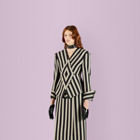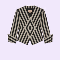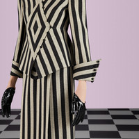 Retro influences continue to animate the latest collection. Geometric shapes combine to create various motif that recalls retro prints. Playing with pattern and texture, this wool jacket features a black and ivory geometric motif. - Ivory and black geometric wool - Lined - V-neck - Long cuffed sleeves - Front button closure - Length: 22.4", based on a size 40 (IT) - Made in Italy - The product shown in this image is a size 40 (IT)