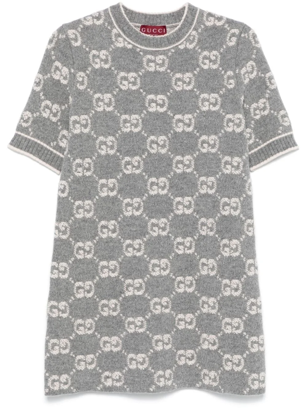 GG-jacquard mini dress Highlights - Light grey - Wool - Knitted construction - Melange effect - Signature gg damier jacquard - Crew neck - Short sleeves - Ribbed cuffs - Straight hem - Thigh-length Made in Italy Composition Wool 100% SIZE & FIT Model measurements Height 5 ft 10 in(1.78 m) Bust/Chest 33.85 in(86 cm) Hips 36.61 in(93 cm) Waist 26.77 in(68 cm) FittingInformation Designed for a relaxed fit, this piece allows for comfort and movement when worn Made with a midweight knit, this piece offers some stretch