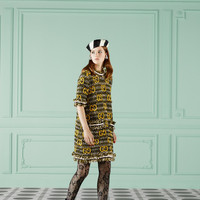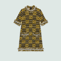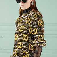The GG motif returns in new iterations – including lamé offerings, bouclé intricate tweeds in refined materials and sequin embellishments. With a bold version of the emblematic monogram, this dress pairs the wool mohair fabric with fringe details. - Black, ivory and yellow wool mohair with GG motif - Crewneck - Fringe details - Short sleeves - Back zip closure - Length: 33.5", based on a size small - Made in Italy - The model is 5'9" and is wearing size small