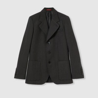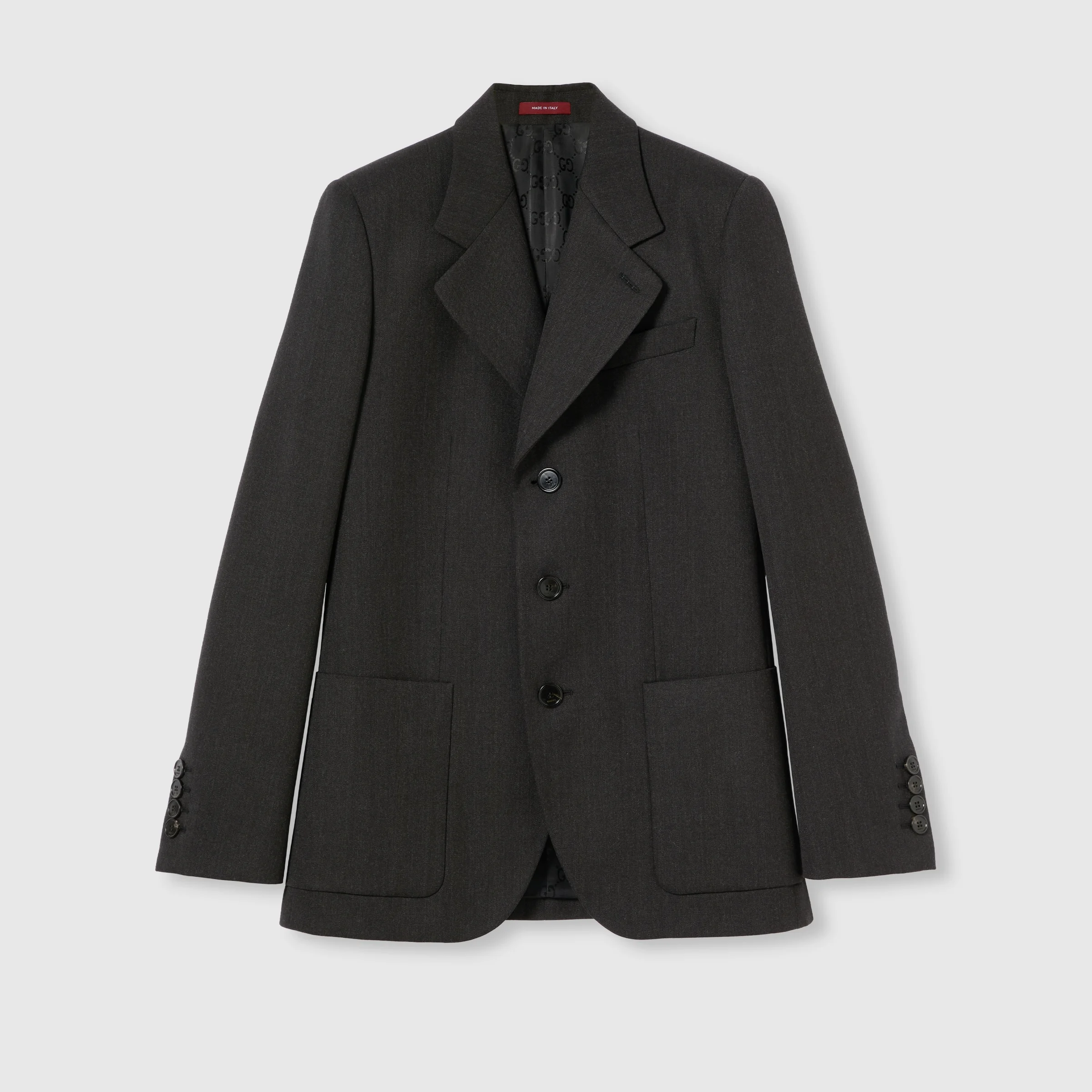 In the Fall Winter 2025 collection, tailoring embraces heritage codes with a contemporary touch. This single-breasted jacket features a notch lapel, front button closure and a structured silhouette. The design is completed by a chest welt pocket and two large patch pockets. - Dark grey wool mohair - Fully lined - Notch lapel - Chest welt pocket - Two front patch pockets - Buttoned cuffs - Button closure - Made in Italy
