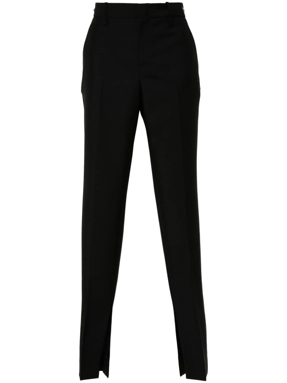 Horsebit trousers Taking inspiration from '90s slim silhouettes, these Gucci tailored trousers are meticulously crafted from a blend of premium wool threads. Signature Horsebit details adorn the waist sides, while ankle slits infuse a vintage charm. Highlights - Black - Mohair-wool blend - Interwoven design - Pressed crease - Tailored design - Signature horsebit detail at the waist - Belt loops - Two diagonal pockets to the sides - Faux pocket detail to the rear - Concealed front button, hook and zip fastening - Mid-rise - Tapered leg - Side slits - Unlined Made in Italy Composition Outer: Mohair 60%, Wool 40% Lining: Acetate 75%, Silk 25% SIZE & FIT Model measurements Height 5 ft 10 in(1.77 m) Bust/Chest 32.28 in(82 cm) Hips 35.03 in(89 cm) Waist 25.19 in(64 cm) FittingInformation Designed for a tapered fit, these trousers allow for a close fit at the waist and a loose unrestricted fit over the leg with a closer fit towards the ankle Made from a midweight non-stretch fabric This piece fits true to size – take your usual size Washing instructions Dry Clean Only
