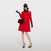 Introducing Spring Summer 2026. This style is featured as part of the "Incazzata" look of La Famiglia, which reinterprets the House’s codes through singular personalities and distinctive aesthetic attitudes. Crafted from wool natte, this coat is defined by Double G buttons. - Red wool natte - Double G button - GG lining - Side pockets - Length: 36.6", based on a size 38(IT) - Made in Italy - Fabric: 100% Wool - Lining: 100% Viscose