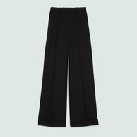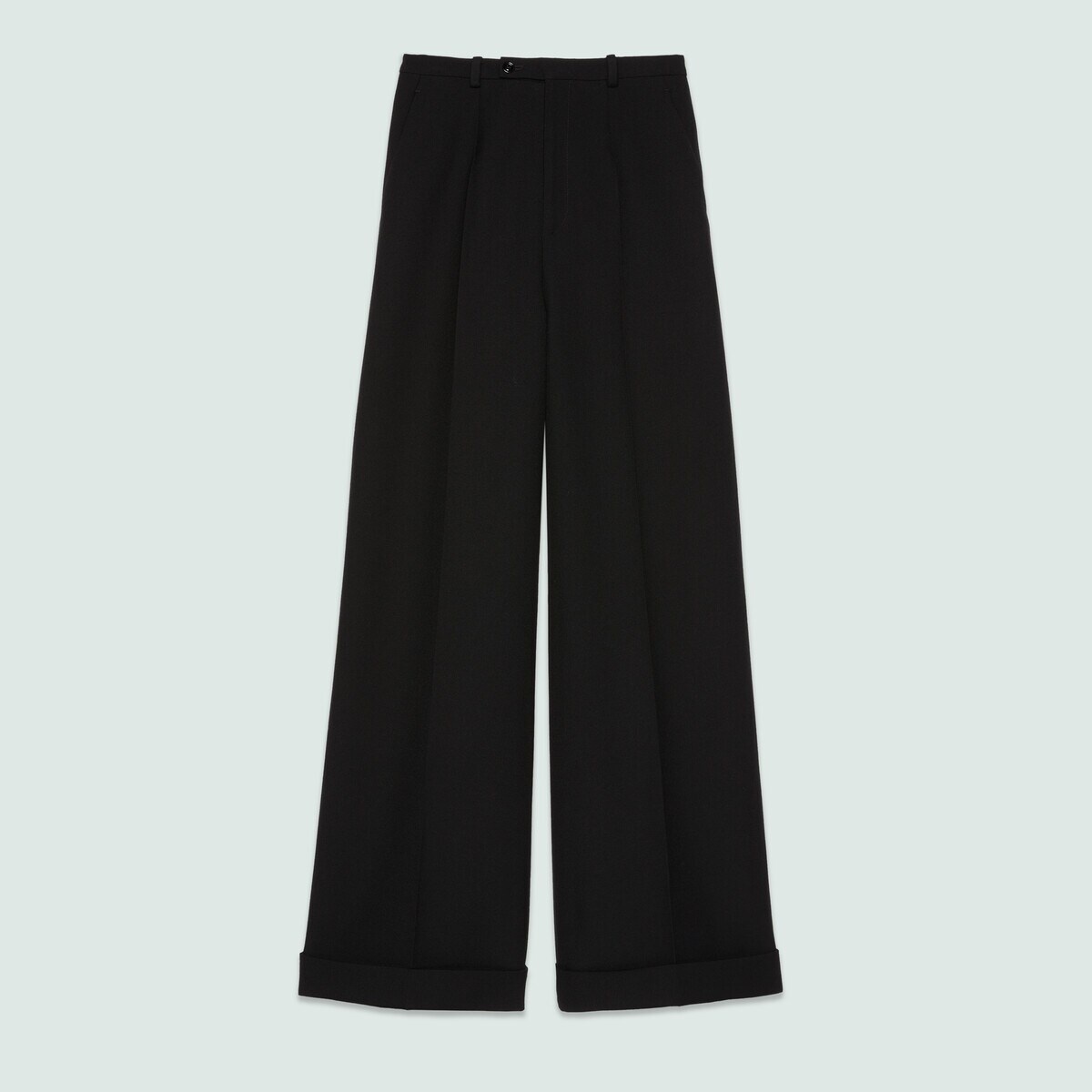 A pair of pants crafted from black wool. A concept continuously explored by Gucci, tailor-inspired pieces combine sartorial excellence and an eclectic vision. - Black wool - Belt loops - Two side pockets - Two back pockets with buttons - Hook and zip closure - Length: 44.9" based on a size 40 (IT) - Leg opening: 28.3" based on a size 40 (IT) - Made in Italy - The model is 5'8" and is wearing size 40 (IT)