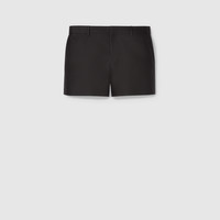 The piece is part of Sabato De Sarno's debut collection, offering a modern take on the House's well-known codes and symbols. Crafted from a blend of wool and silk gabardine, this pair of shorts is designed with a low waist and an internal tape belt that recalls the traditional sartorial pants. The piece is completed with two side and two back pockets and belt loops. - Black wool silk gabardine, with a slightly shiny surface - Lined - Internal tape belt - Low waist - Two side pockets - Two back pockets - Belt loops - Tab and zip closure - Leg opening: 12.2" , based on a size 40 (IT) - Length: 12.5" , based on a size 40 (IT) - Made in Italy - The model is 5'8" and is wearing size 40 (IT)