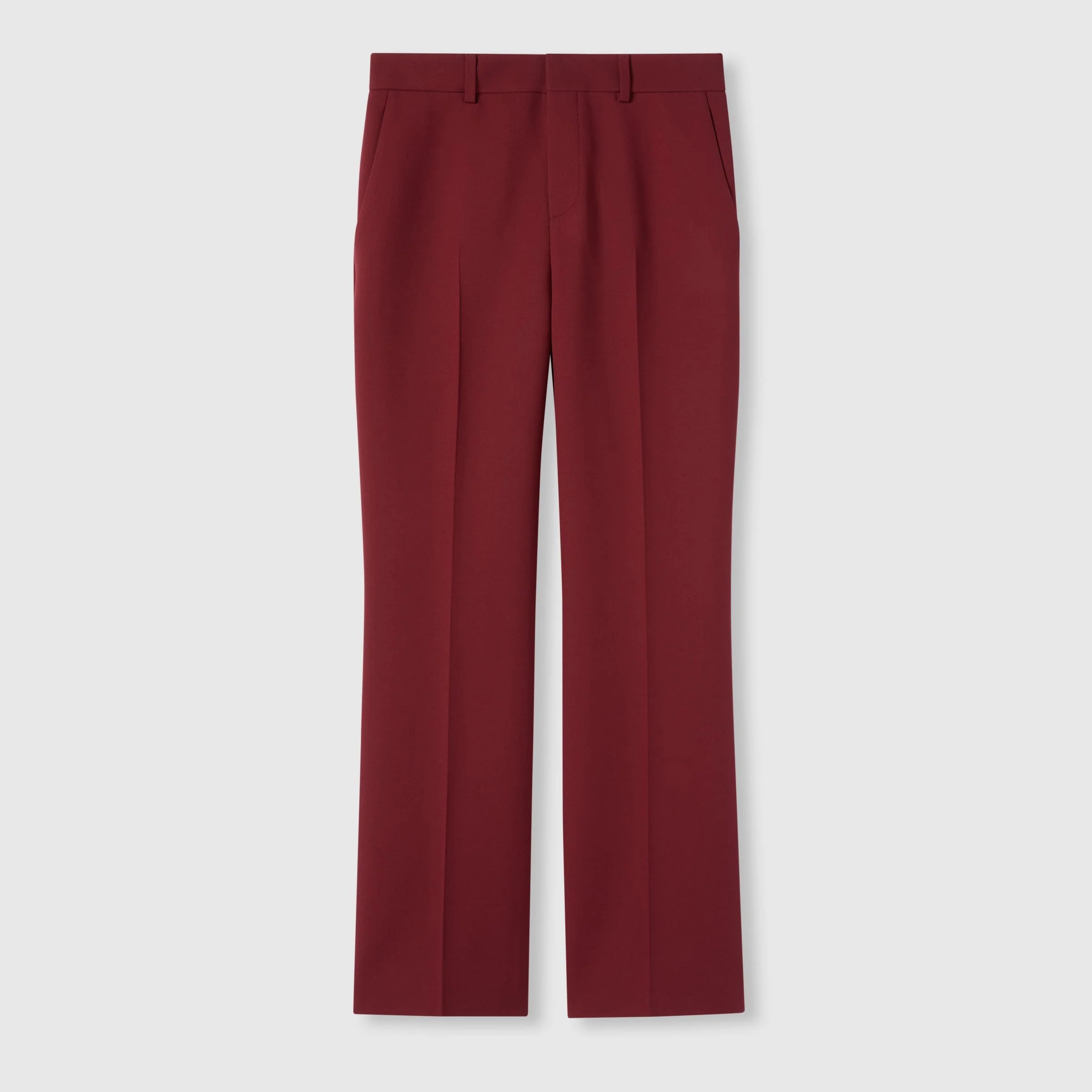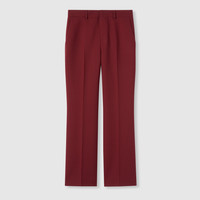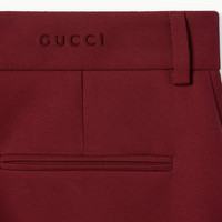The Pre-fall 2025 collection introduces a new take on warm materials on sophisticated outerwear pieces, in traditional and contemporary silhouettes. This classic pair of wool pants feature a subtle Gucci embroidery. - Gucci Rosso Ancora red cady crepe wool silk - Embossed Gucci logo - Unlined - Belt loops - Two side pockets - Two back pockets - Ironed crease - Hook tab and zip closure - Made in Italy