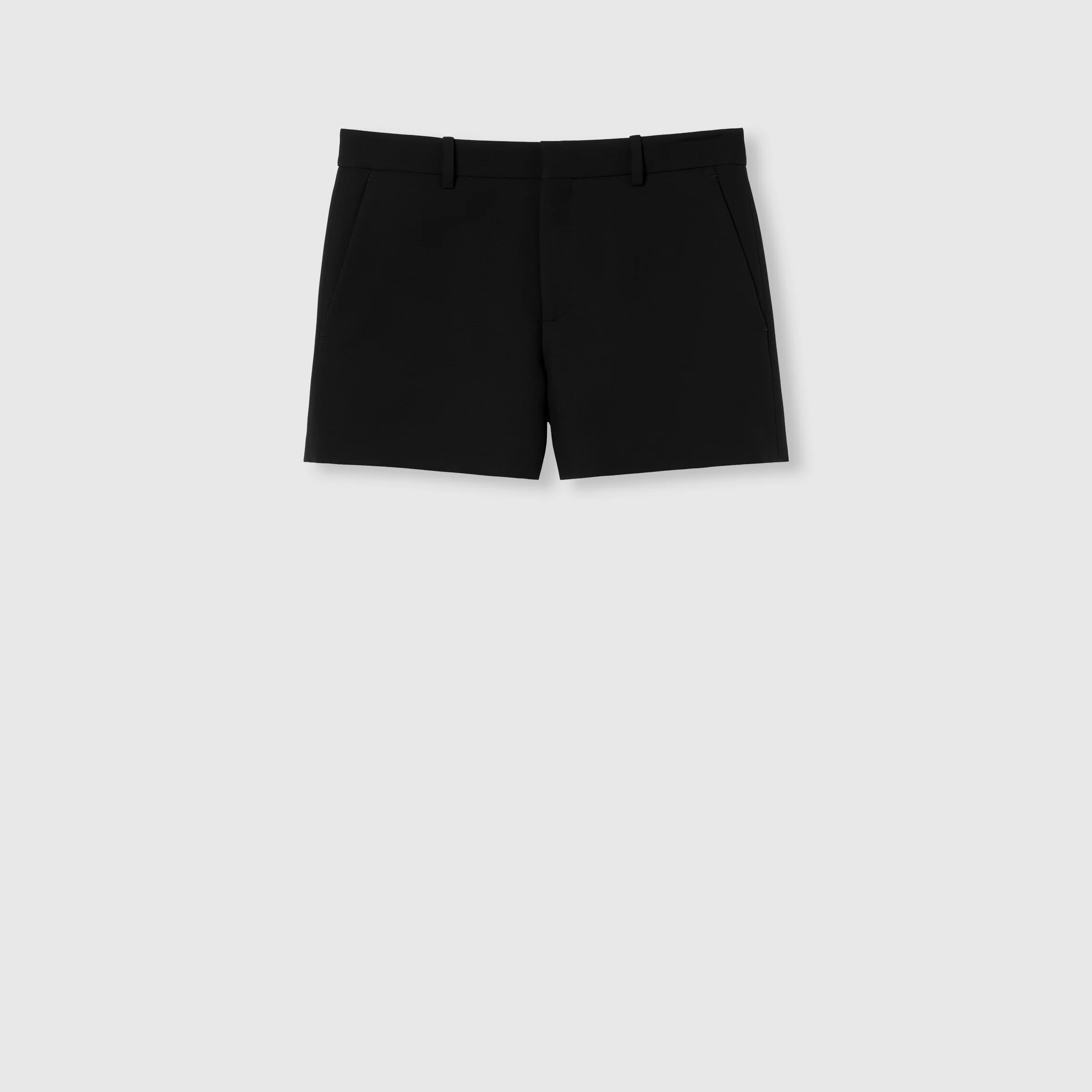 The Pre-fall 2025 collection introduces a new take on warm materials on sophisticated outerwear pieces, in traditional and contemporary silhouettes. This pair of shorts in black feature a subtle Gucci embroidery. - Black cady crepe wool silk - Gucci embroidered detail on the back pocket - Lined - Belt loops - Two side pockets - Two back pockets - Hook tab and zip closure - Made in Italy